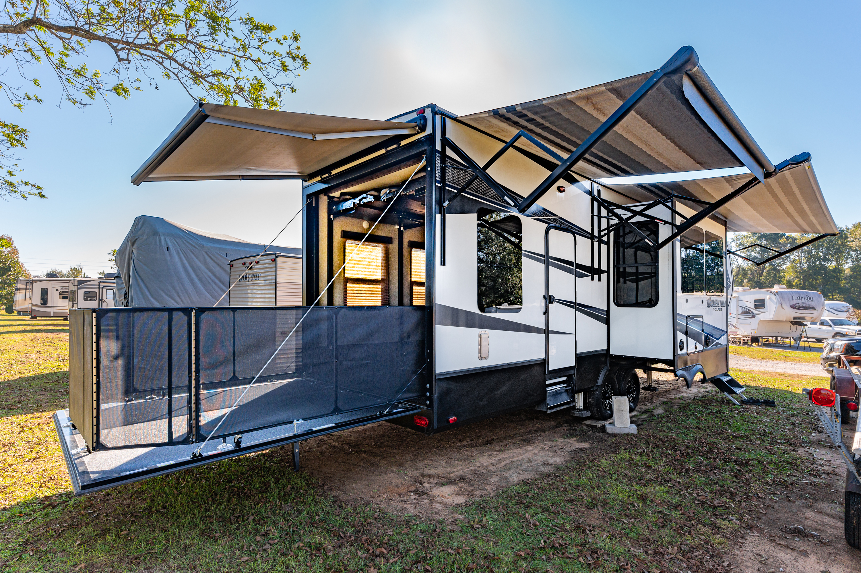 . The biggest garage has a toy hauler by Grand Design. This model has a significant. Available in Fifth Wheel Travel Trailer Class A and Class C versions Toy Haulers have a built-in garage specifically designed to haul your toys including motorcycles ATVs and any other.